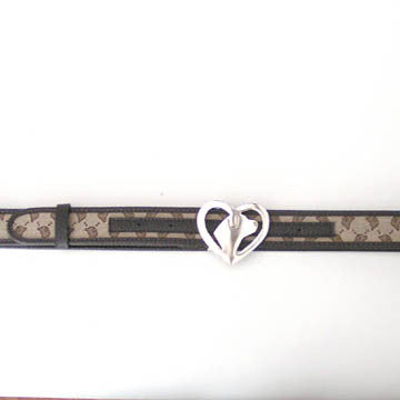 Made of brown or black Signature Fabric trimmed with matching leather. The buckle is our Cariad trademark reproduced in 2" eye catching silver.